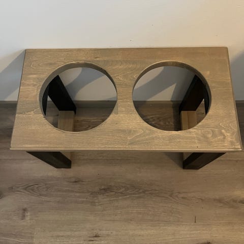 Painava metallinen mäyräkoira ruokintaalusta