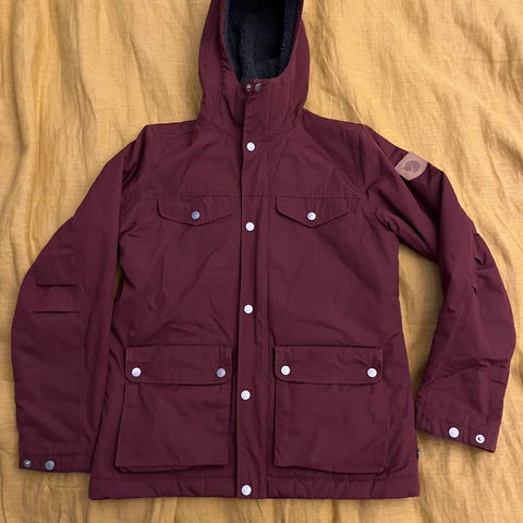 Käytetty Fjällräven Greenland talvitakki. Koko XS. Kai-kai 50 cm, olka-helma 75 cm, kainalo-hihansuu 46 cm.