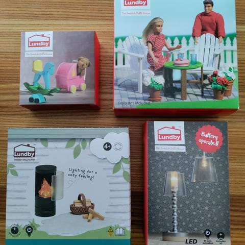 Lundbyn puinen hiekkalaatikko kokoa 7,5 cm x 7:5 cm, missä kaksi valmista hiekkakakkua ja pienet jalanjäljet. Laatikossa kaksi muovista ämpäriä, korkeus 1 - 2 cm, toisessa ”hiekkaa” ja toisessa muovilapio. Hiekka näyttää hiekalla, mutta on jotain muuta materiaalia, mikä ei selvinnyt mistään. Mittakaava 1:18: ikäsuositus 3+ vuotta.