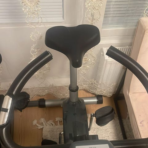 Harjoituspyörä kuntopyörä musta ja harmaa väri, säädettävä satula, digitaalinen näyttö harjoitustietojen seuraamiseen. Sopii kotikäyttöön peruskuntoiluun. Poljinvaste ja sen säätö on erittäin maltillinen, joten tämä on kuntopyörä jolla saa mukavaa kevyttä liikettä jaloille. Mittarissa pieni halkeama.