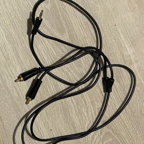 Tiedot: Laadukas 3.5 mm plugista kahteen RCA-liittimeen menevä aux-johto. Sopii erinomaisesti auton soittimen, vahvistimen, subwooferin, television tai tietokoneen liittämiseen. Molemmissa päissä tukeva liitin ja kunnollinen paksu kaapeli.