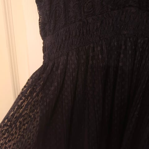Sierra bluen mekko. Tummansininen. Leveä kaula-aukko, lyhyet hihat. Juostava kangas. Sivuissa taskut.Kellomekko tyylinen leikkaus. Istuva ylhäältä ja levenee helmaa kohden. Vähän käytetty, kuin uusi.
