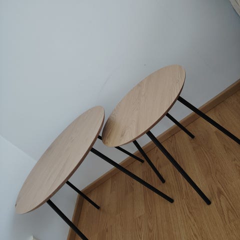 Laadukas sohvapöytä tukevalla metallijalalla.