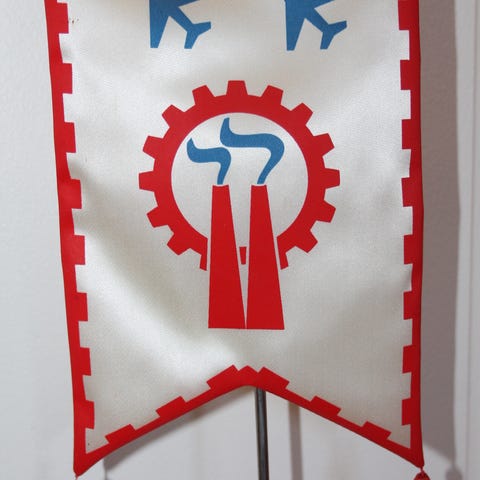 Suomi Koverhar terästehdas lentokone vintage viiri 80-luku pöytästandaari