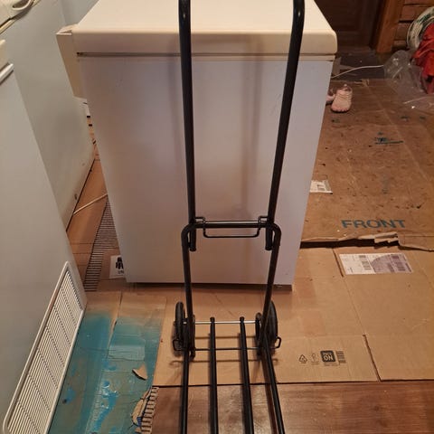 Myynnissä vanhat ido renkaiset kokoontaittuvat kärryt. Alapuolella lukitusmahdollisuus.