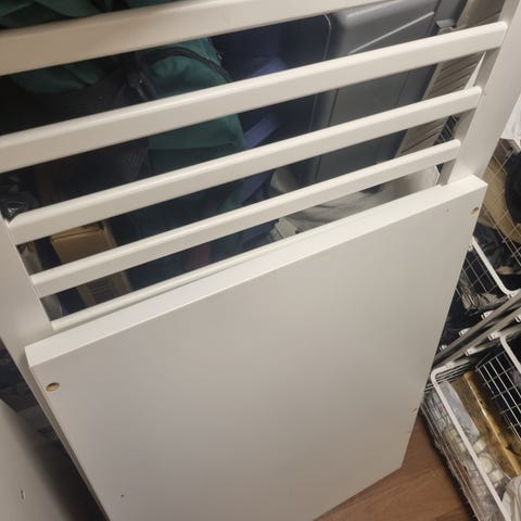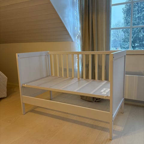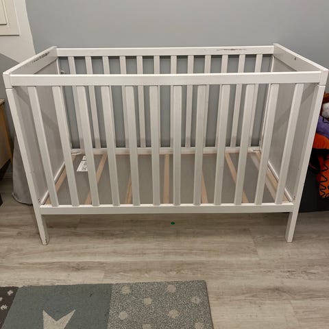Hyvässä kunnossa, osiin purettuna. Patjassa ollut aina kosteussuoja. Koira talous. Ison sivun keskeltä on sahattu kolme pinnaa pois jotta taapero pääsi siitä kulkemaan. Pinnat on tallessa ja saa mukaan halutessaan.