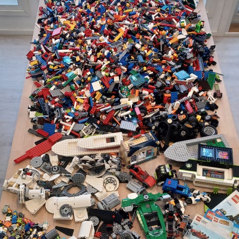 Iso kasa sekalaisia Legoja, nopealla selauksella jotain Star Wars aiheisia, Indiana Jones, Batman...