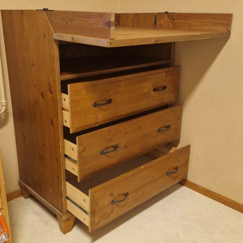 Wilma-lipasto (Lundbergs Möbler) korkea valkoinen hyväkuntoinen lipasto mielellään Turun seudulta. Lipastossa 6 laatikkoa.