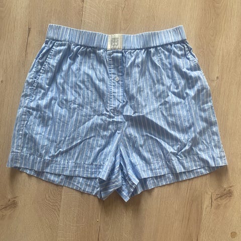 Liisa Riski vaatemerkin shortsit. Näissä on upea, hieman metallinhohtoinen pinta.