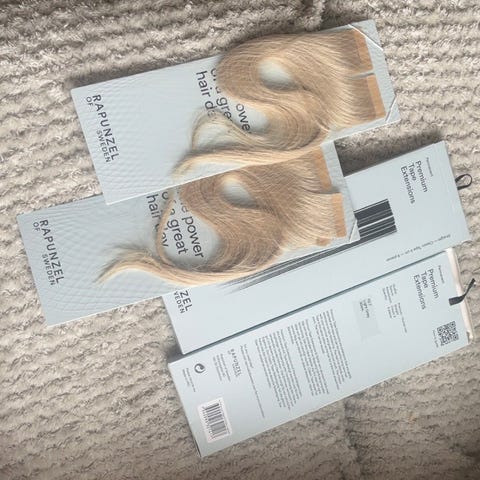 Myydään parikertaa käytetyt teippi hiustenpidennykset. Pituus 45cm. Väri punaruskeat, joukossa myös tummempaa hieman. Kuin uudet.
