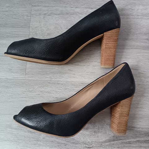 Vain sisätiloissa juhlissa käytetyt kengät. Korko takaa mitattuna 5,5 cm, koron leveys noin 3,5 cm. Sisämitta 27 cm, Päkiän leveys 9 cm. Korkealaatuiset, tukevat nahka-avokkaat. Siro malli. Hajusteeton talous ja ei lemmikkejä. Maksu käteinen tai tilisiirto. Ostajalle postikulut.