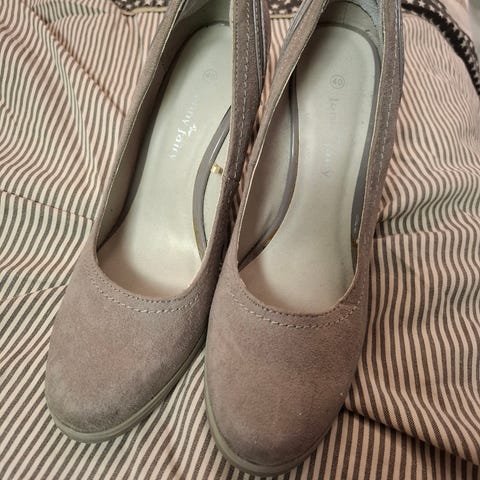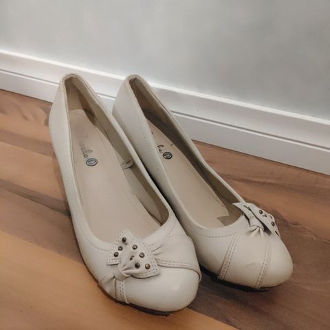 Beiget kiilakorkkarit, koko 40. Takana punaista väriä, saattaa lähteä pois.
