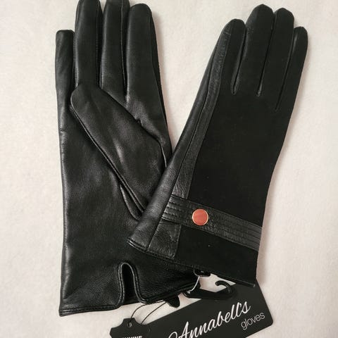 Naisten mustia nahkakäsineitä 2 paria. Koko 7