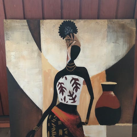 Taulu, jossa abstrakti kuva kasvoista. värikäs ja ilmeikäs maalaus, joka esittää kasvoja useassa kerroksessa. Käytetty materiaali ja koko eivät ole tiedossa.
