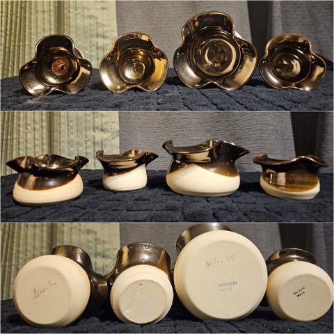 Myydään siistikuntoinen kotimainen Marja Myllymäki keraaminen jalallinen tuikkukippo. Korkeus 20cm ja halkaisija 8cm.Lähetys onnistuu postikuluja vastaan.
