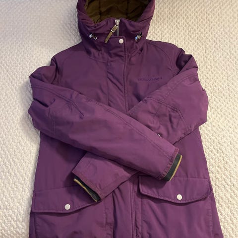 Tumman punainen, koko 36, hihansuissa resorit, läppätaskut, käsien lämmittely taskut, povarissa verkkotasku, vetoketjun vieressä vetoketju tasku, huppu. HOX! Vihreä takki muuten samanlainen mutta ei povaritaskua ja koko 38. Hinta 20e/ takki.