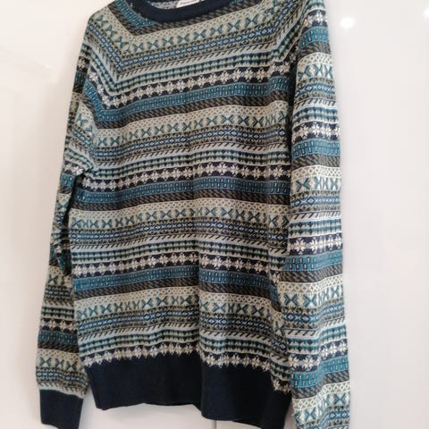 Naisten sinivalkoinen neule. Reilu S koko. Nouto.