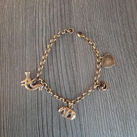 Myydään Kalevalan korun pronssinen Aarrekääty ranneketju 4 riipuksella.