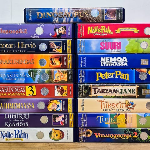 Kuvissa näkyvät kotimaiset vhs elokuvat voi noutaa kahvipaketilla.