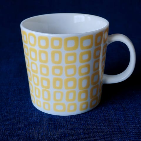 Arabian Neliö -muki, Teema-mallia 1990-luvun lopusta, tilavuus 0,3 litraa, suunnittelija Hilkka-Liisa Ahola