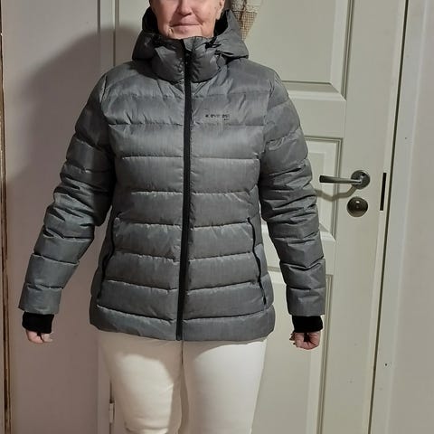 Tässä lämmintä päälle Everest untuvatakki. Uuden veroinen. Jostain syystä kutistunut kaapissa ;) Väri valkoinen/harmaa, koko 40.