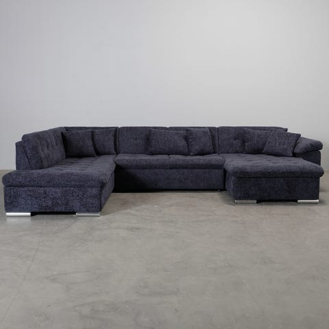 Tyylikäs ja mukava U:n muotoinen sohva, joka tarjoaa tilaa koko perheelle. Harmaan sammettikangasverhoilun ansiosta sohva on helppo yhdistää moneen eri sisustustyyliin.