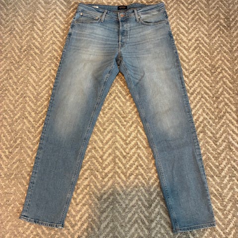 Jack and Jonesin harmaat farkut. Ihan pari kertaa käytetty, uudenveroiset. Malli Glenn.