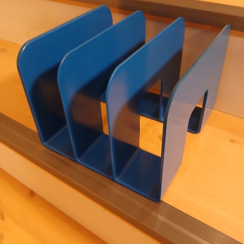 metallinen, säädettävä kaltevuus ja korkeus. Liukuu kotelon sisään, kun ei käytössä. 10 €/kpl