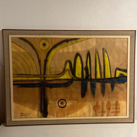 Myydään Markku Katajiston "Kolme perusväriä" öljymaalaus vuodelta 2001.