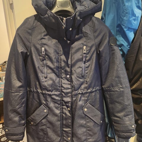 Siisti,ehjä, luumunvärinen,hupullinen, vuorellinen, tuulenpitävä, lämmin takki. Monta nahkaista yksityiskohtaa, edessä taskut, hupussa valkoinen karvareunus, vyötärökiristin. Stockmannilta ostettu. Voit noutaa Lohinivasta tai postitus.