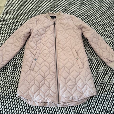 Pinkki, siisti, ehjä kevyttoppatakki, edessä 4 vetoketjutaskua. Voit noutaa Lohinivasta tai postitus.