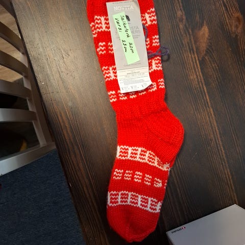 Uudet, käsinneulotut, varrettomat sukat - "tillukkaat" . Novitan 7-veljestä lankaa. Kestää konepesun.