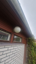 Seinävalaisin ulkokäyttöön, valkoinen pallo, sopii ulkokäyttöön. Valaisin on kiinnitetty seinään ja siinä on johdolla varustettu kytkin.