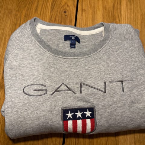 Tummansininen, siistissä käytetyssä kunnossa oleva Gantin college. Koko S. Hinta 20 euroa.