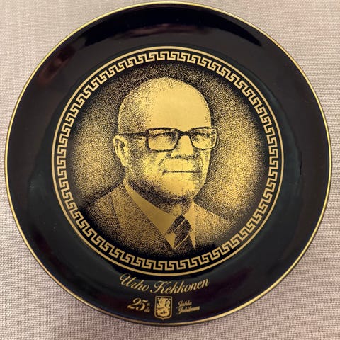 Arabia Urho Kekkonen koristeellinen seinälautanen 25 cm musta kulta