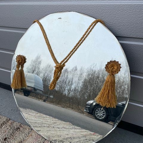 Pyöreä, puinen peili (68 cm)
