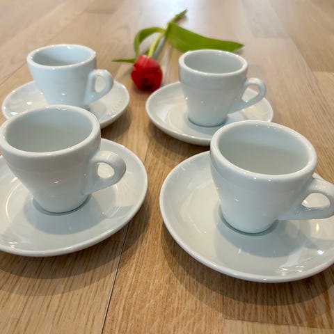 Lavazza espressokupit, 6 kappaletta. Pohjassa merkintä Arcopal France. Nouto Lauttasaaresta. Kaikki yhteensä 13 €