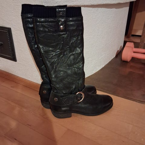 Todella hyvässä kunnossa olevat ja todella vähällä käytöllä olleet Ten pointsin nahkaiset pitkävartiset saappat. Väri musta. Säilytetty aina varret tuettuna suorassa.