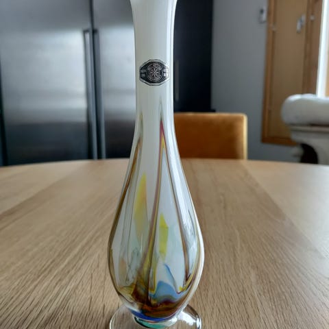 Korkeus 23 cm. Ehjä, kyljessä valmistusvirheenä n. 3 cm pituinen pinnallinen viiru. Vähän käytetty.