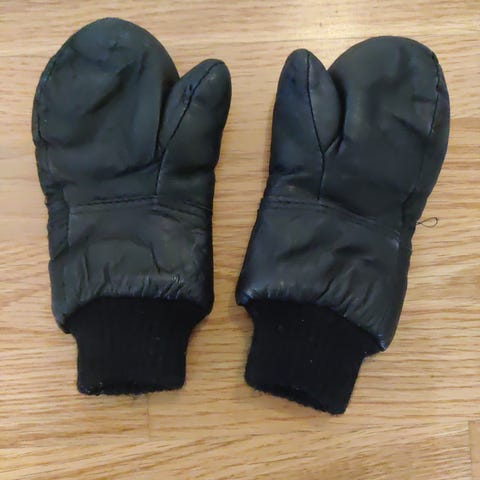 Myydään lasten nahkarukkaset. Pinta molemmista kulunut. Yhdessä hanskassa peukalon sauma auennut kuva liitteenä. Koko 2-3v. Pinta aitoa nahkaa vuori polyesteri/akryyli. Nouto kasakkamäestä tai postitus