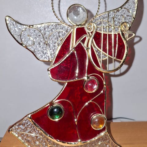 Vanha punainen tiffany tuikku enkeli, kokonais korkeus korkeus 14 cm.
