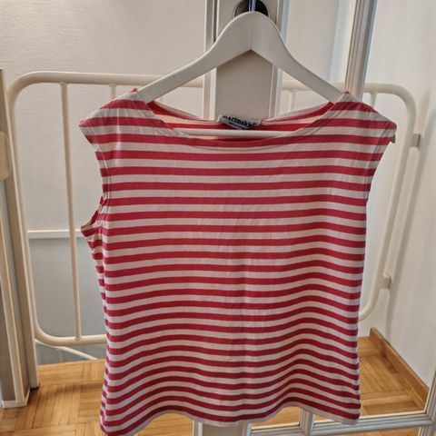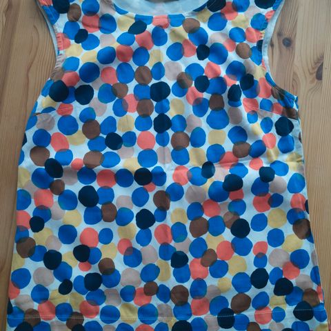Myydään Marimekon toppi. Takana vetoketju. Takana muotolaskokset tuoden istuvuutta, samoin edessä rinnan kohdalla. Sivuilla pienet halkiot. Vetoketjun päässä kangas vähän rispaantunut mutta saa korjattua.