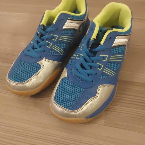Käyttökelpoiset sisäpelikengät. Keltainen sisus jonkin verran tummunut, ulkoisesti hyvässä kunnossa.