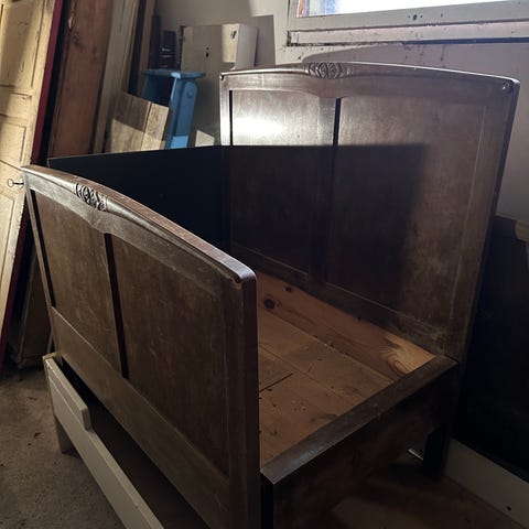 Myydään vanha levitettävä puinen sänky 1930-luvulta. Toimii myös penkkinä/sohvana. Maalattu valkoiseksi ja ollut sisäkäytössä tähän asti.