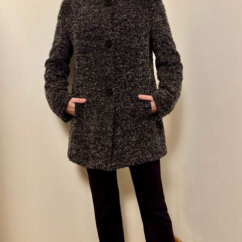 Harmaa villakangastakki, koko L. Kainalo-kainalo 50cm, vyötärö 42cm.
