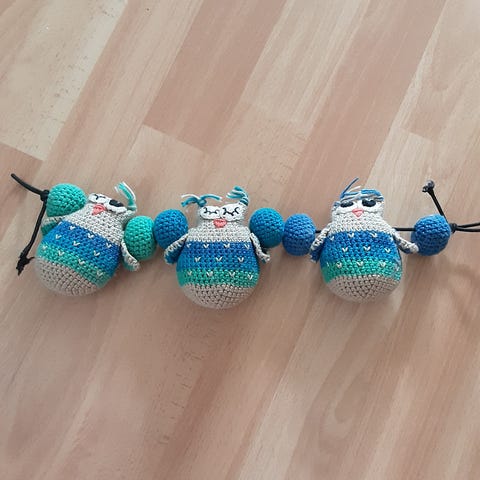 Kaksi iso virkattua mustekalaa, Puuvillalangasta virkattu. Hp. 3€/kpl + pk