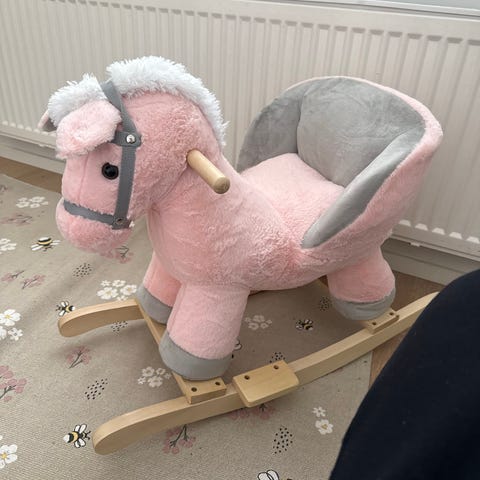 Jollyroom Keinuhevonen on pehmustettu lastenhuonekalu, joka on vihreän sävyinen ja suunniteltu lapsille. Keinuhevonen on valmistettu pehmeästä materiaalista ja siinä on puinen keinujalusta sekä kahvat lapsen turvalliseen kiinni pitämiseen. Tuote soveltuu sisäkäyttöön ja tarjoaa lapsille viihdyttävän ja turvallisen keinumiskokemuksen.