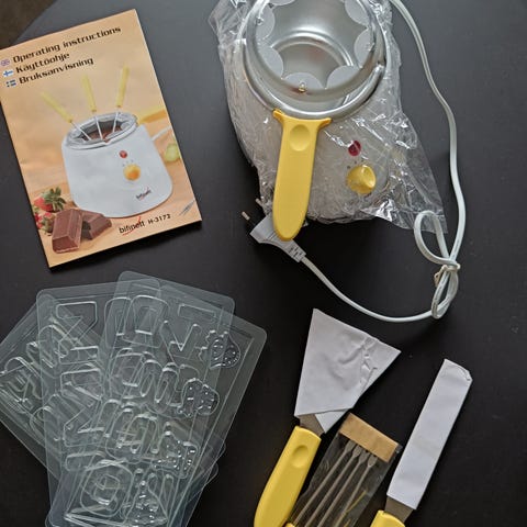 Vintage sveitsiläinen suklaafondue, Perk. Käyttämätön. Kulhon haökaisija n. 15 cm, korkeus n. 5,5 cm.