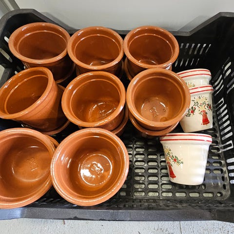 Neljä pienehköä saviruukkua. Korkeus n. 9,5 cm. Myyn kaikki ruukut yhdessä yhteishinnalla.