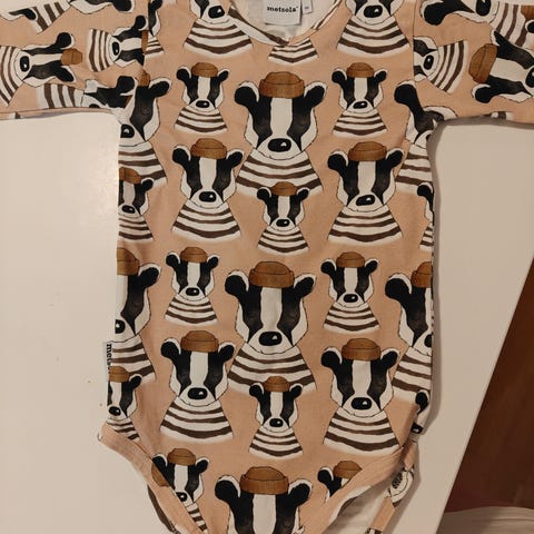 Metsola vauvan body ja paita, koko 86, unisex. Body on ruskea ja valmistettu 95% puuvillasta ja 5% elastaanista. Paita on keltainen, valmistettu 95% puuvillasta ja 5% elastaanista. Pitkähihainen vaatetus, sopii lapsille.